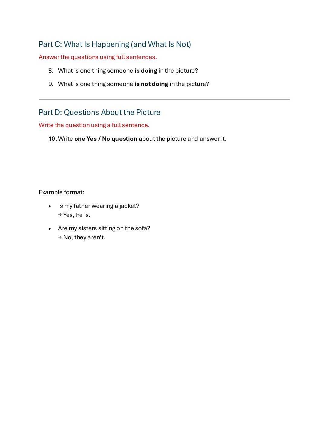 Present Continuous – Yes / No Questions
